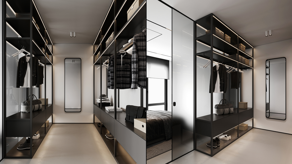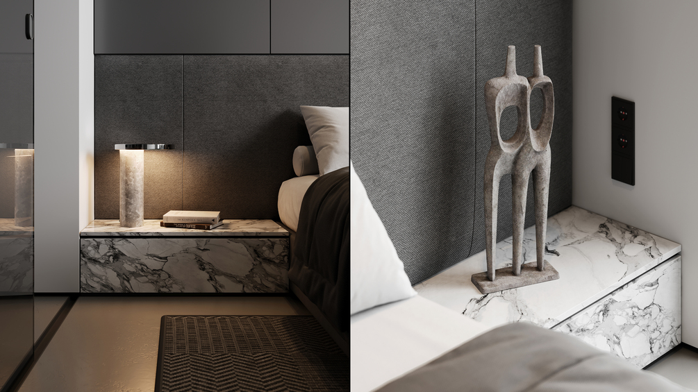 A beautifully crafted 3D bedroom scene featuring a sleek closet room, a minimalist concrete floor, and a sophisticated gray-toned interior design. This space exudes modern elegance and functional comfort, making it an ideal setting for designers and architectural visualizers looking to refine their skills in realistic rendering.With detailed PBR materials, custom lighting setups, and meticulously chosen decor elements, this model offers a perfect foundation for mastering lifelike visualizations. Whether you’re working on ambient lighting, enhancing material realism, or creating harmonious compositions, this scene provides valuable insights to take your work to the next level. Perfect for those specializing in modern interior design and minimalist aesthetics.